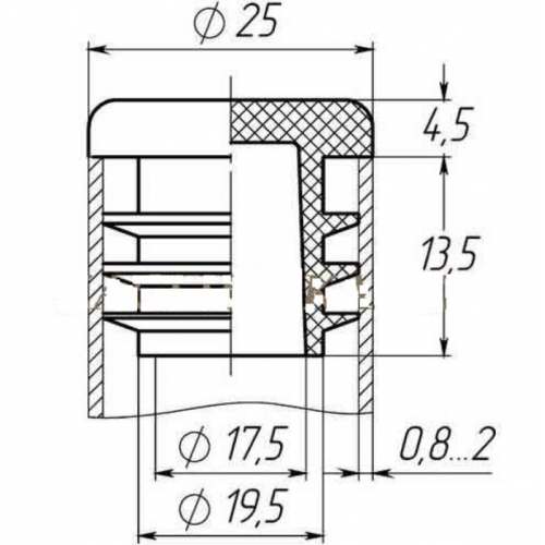 Пластикова заглушка діаметром 25 мм підходить для труби з круглою формою перерізу з товщиною стінки 0,8 - 2 мм.