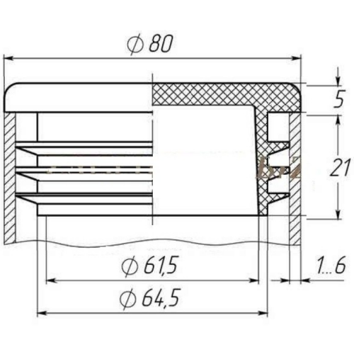 Пластикова заглушка діаметром 80 мм підходить для труби з круглою формою перерізу з товщиною стінки 1 - 6 мм.