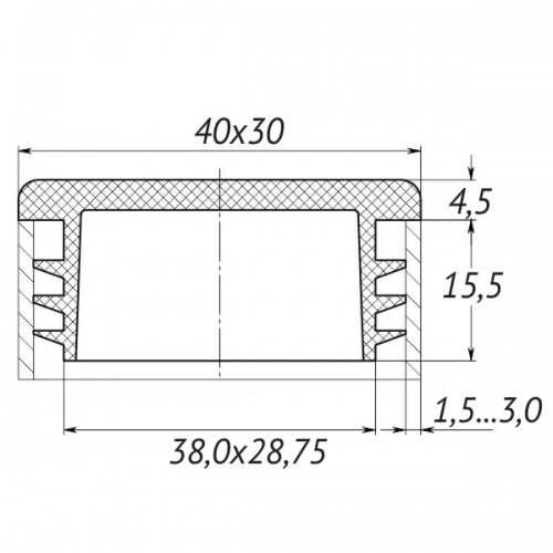 Пластикова заглушка 30мм x 40мм підходить для труб із товщиною стіни 1,5 - 3 мм.