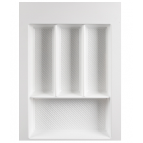 Лоток для столових приладів містить кілька секцій для зберігання кухонного приладдя. Зручний тим, що дозволяє сортувати столові прилади по секціях. Така організація зберігання в лотку є дуже зручною, особливо коли на кухні багато приладів. Розмір лотка можна регулювати під розмір шафи за допомогою обрізки непотрібної частини лотка (довжина, мм: 420 - 490), (ширина, мм: 290-350).