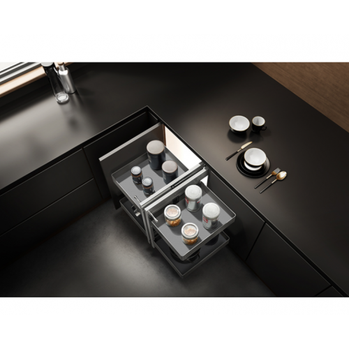 Магічний кут для кухні - це інноваційний та практичний аксесуар для оптимального використання кухонного простору. Він створений спеціально для кутових шаф, де традиційно важко забезпечити зручний доступ до речей.