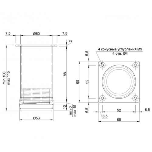 Меблева ніжка регульована Sigma D=50мм H=100мм алюміній (714848)