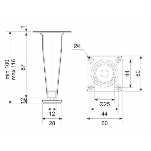 Меблева ніжка регульована Sigma конусна, H=100мм, хром (714257)