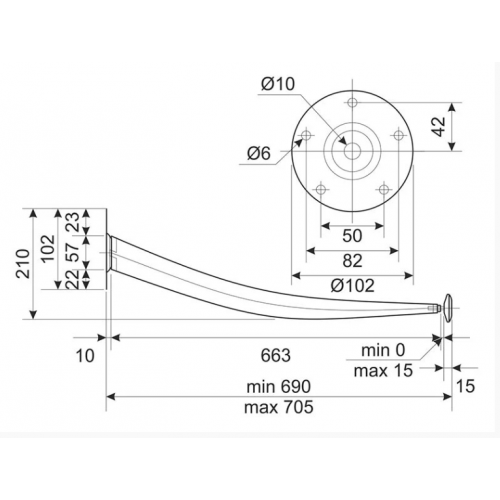 Меблева ніжка вигнута Sigma T-710 регульована, H=710мм, D=60мм, хром (714245)
