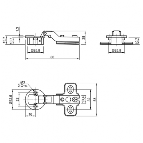 Тип монтажу — Slide-On Прикручування саморізами Фрезерування під чашку