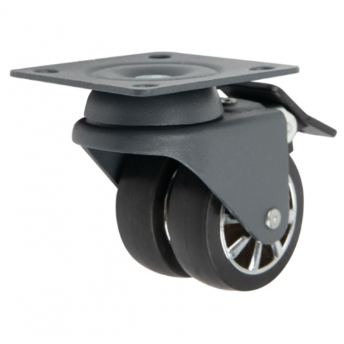 Меблевий ролик Sigma пластиковий з подвійним майданчиком з гальмом D=50мм Н=73 мм для меблів крісел тумбочок столиків антрацит чорний (714310)