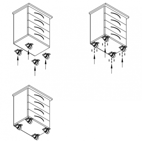 Установка роликів дозволяє зробити експлуатацію меблів комфортнішою. Завдяки колесам предмети інтер'єру без проблем пересуваються для полегшення збирання.