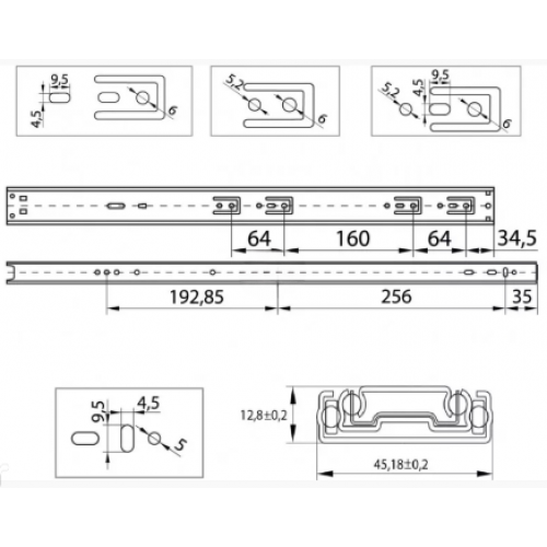 Напрямна кулькова телескопічна складається з двох частин, одна з яких кріпиться до корпусу меблів, а інша до ящика.