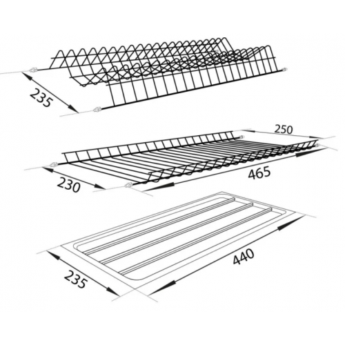 Сушка для посуду Sigma в шафу 500 вбудована (L=465 мм) термопластична чорна (2 полиці, 1 піддон та 8 кріплень) (714486)