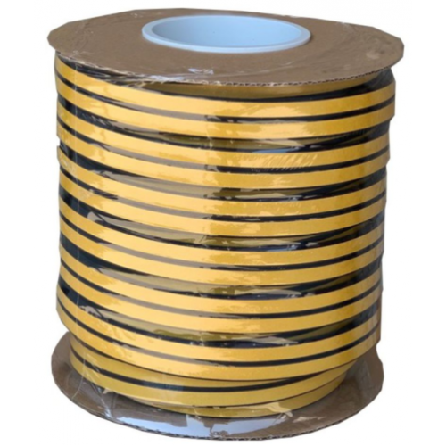 З одного боку нанесений клейкий шар з армуючим скловолокном для наклеювання ущільнювача. Клеїться по периметру віконних рам та дверних коробів, попередньо необхідно добре очистити та знежирити. В результаті ущільнювач ефективно захищає від проникнення в приміщення пилу, холоду, вітру, спеки, шуму, дощу та комах.