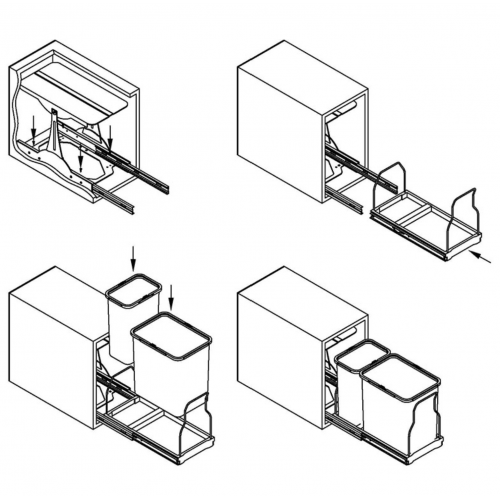 Висувне відро для сміття – мабуть, найпопулярніший вид відер для сучасної кухні. Цей простий пристрій дуже практичний і універсальний. Легко чиститься - просто виймаєте внутрішнє відро за спеціальні ручки, а потім повертаєтеся назад. Має нижнє кріплення, висувається за допомогою руки.
